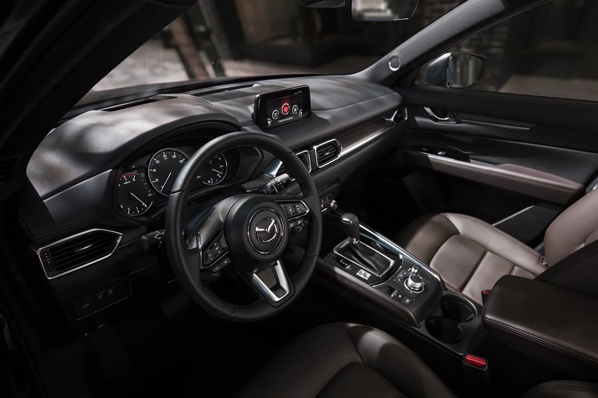 Các tiện nghi trên xe được sắp xếp hướng trục và đối xứng nhằm mang lại sự cân bằng. Các chi tiết được bố trí hướng về người lái, giúp thao tác và điều khiển dễ dàng hơn. Ngoài ra, cách bố trí chân ga, vị trí ngồi, các nút bấm, thông tin vận hành, tầm nhìn của người lái... được hãng nghiên cứu và thiết kế theo hành vi, phản xạ của con người, giúp giảm điểm mù và tránh phân tâm khi lái xe. Các tiện ích gồm: màn hình HUD, kết nối Apple CarPlay và Android Auto, loa Bose, gương tự động chống chói,… Ngoài ra, CX-5 còn được trang bị nút xoay đa hướng điều khiển màn hình trung tâm Mazda Connect hiện đại và dễ dàng kết nối.