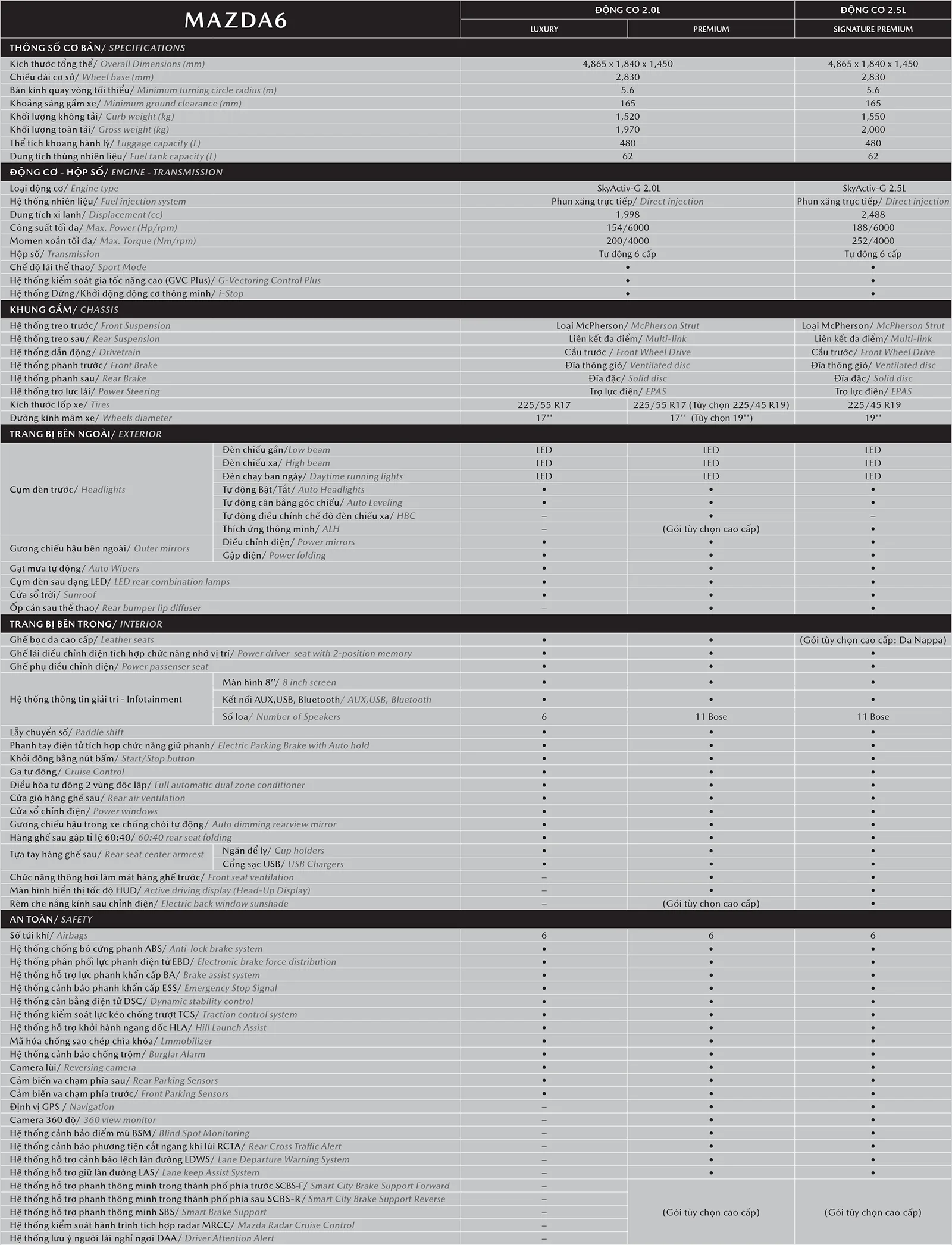 Mazda6 2.0L Premium: 809,000,000VNĐ
